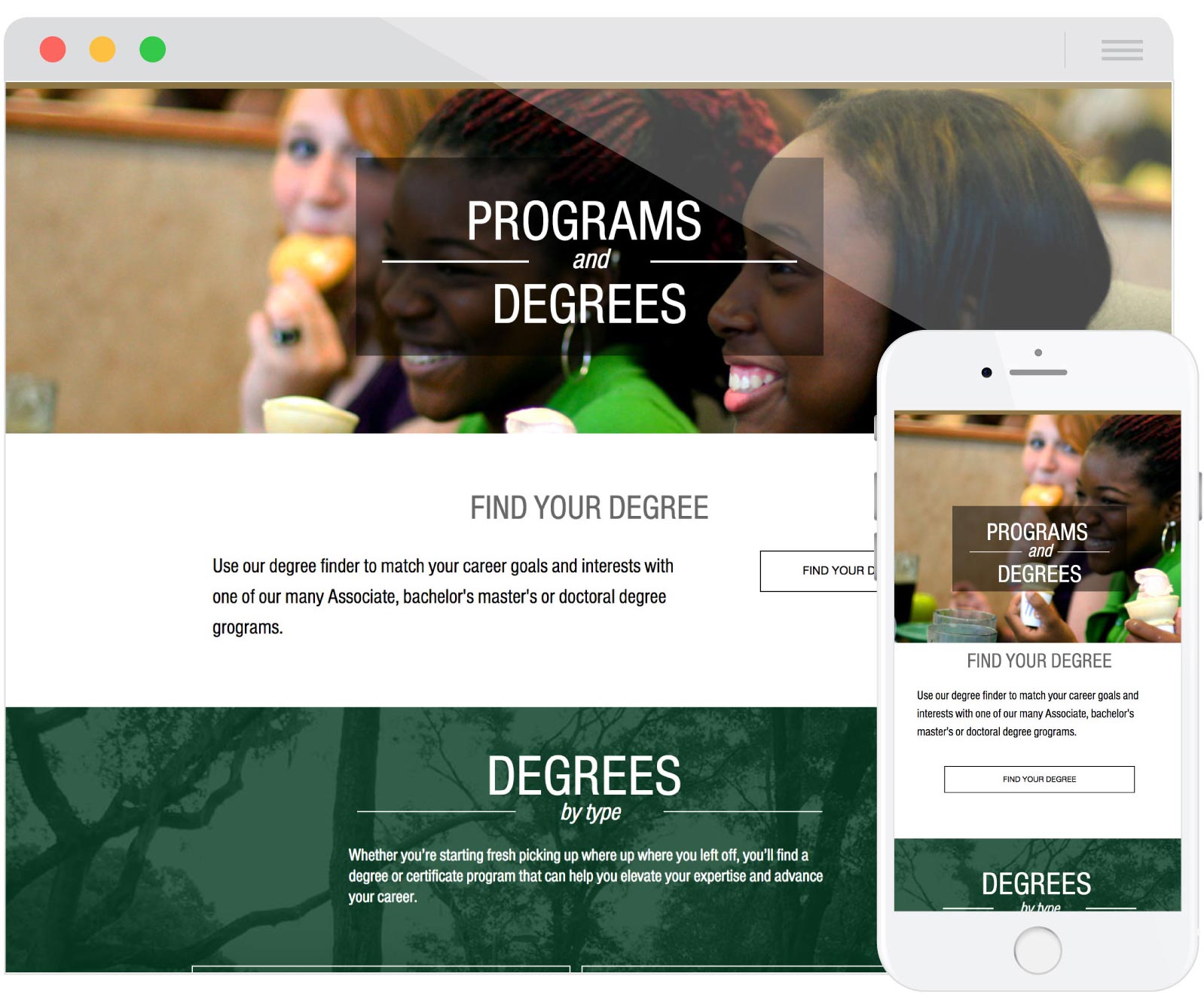 A microsite created to aid prospective students in finding their preferred degree.