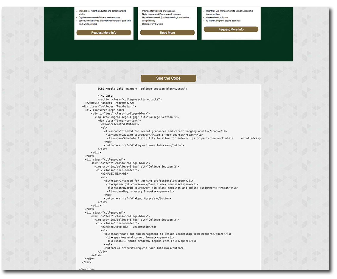 Due to an organizational restructure, the website was never finished. However, the backend pattern library had over fifty different UI items to customize and implement.