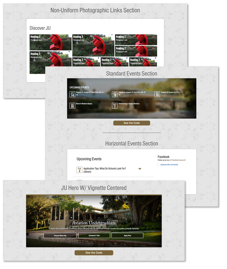Pattern libraries are a collection of pre-coded user interface design elements. A pattern library increases consistency and ease of maintenance among large organizations such as universities. The pattern library for JU never reached completion due to untimely organizational restructuring.